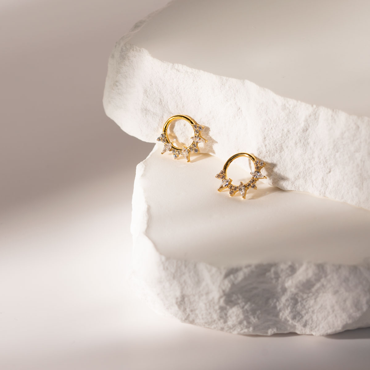 Kolczyk został wykonany z tytanu klasy medycznej ASTM F-136 i pokryty trwałą złotą powłoką PVD. Dzięki niej kolczyk zachowuje głęboki, szlachetny połysk oraz odporność na uszkodzenia. Zapięcie typu clicker sprawia, że jego użytkowanie jest wyjątkowo komfortowe i bezpieczne – wystarczy jedno kliknięcie, by go założyć lub zdjąć.