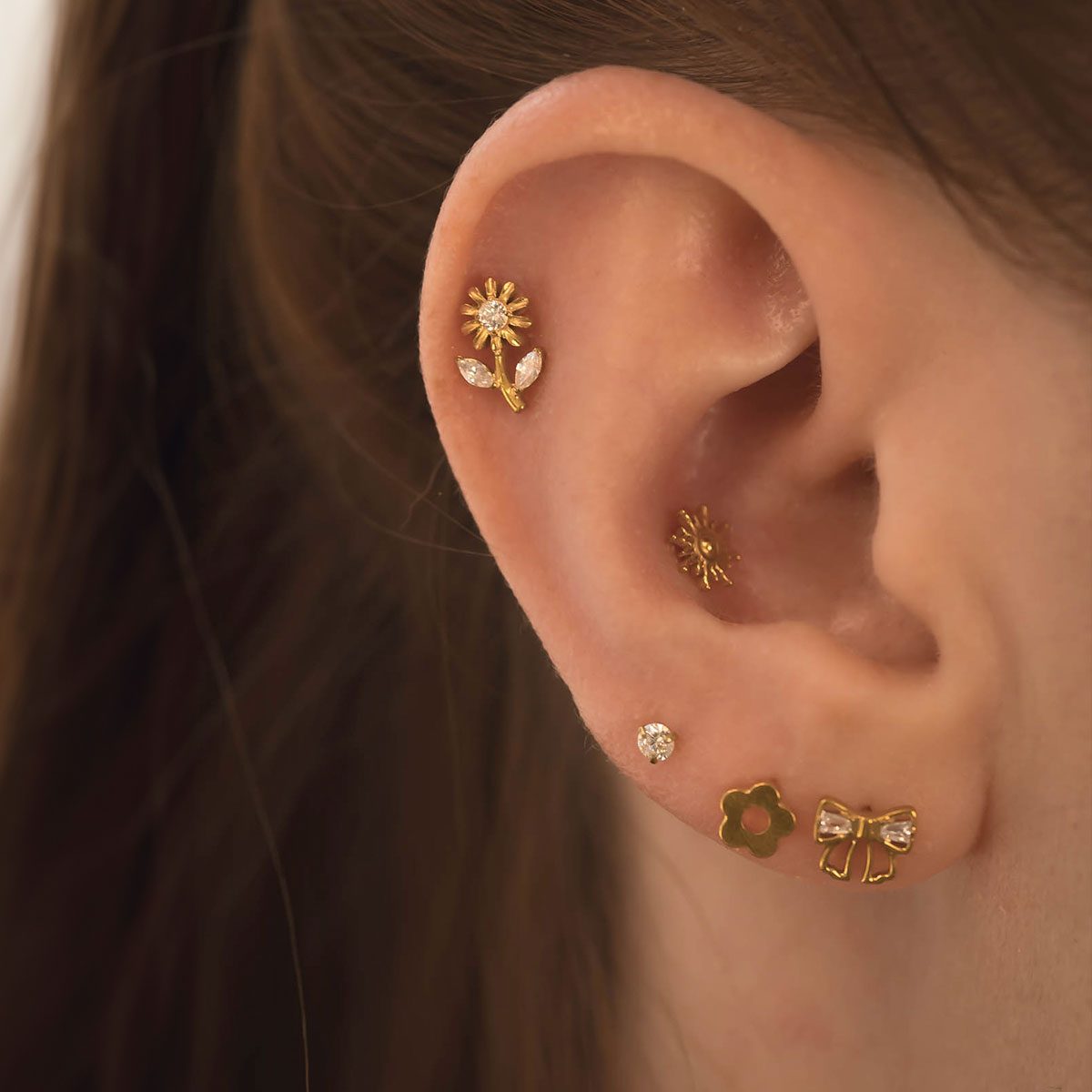 Idealny do piercingu płatka, helixa, tragusa lub innych przekłuć ucha. Subtelna forma stokrotki dodaje lekkości i uroku każdej stylizacji.