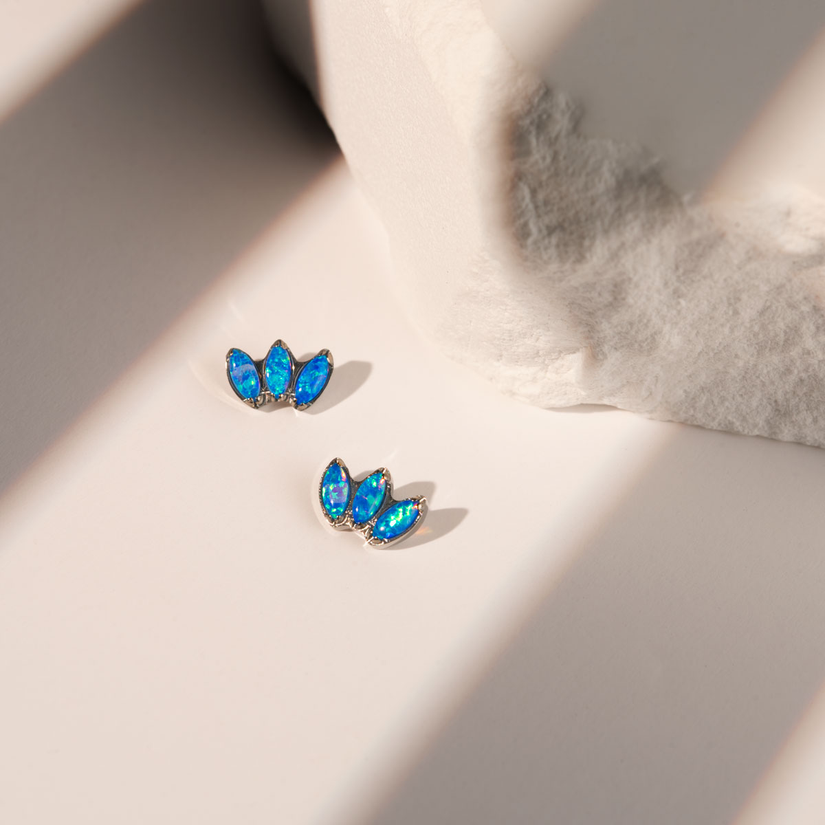 Ten tytanowy labret to połączenie klasyki i nowoczesności w najpiękniejszym wydaniu. Trzy opale w intensywnym, niebieskim kolorze osadzone zostały w klasycznej, srebrzystej oprawie, która pięknie odbija światło i przyciąga spojrzenia.